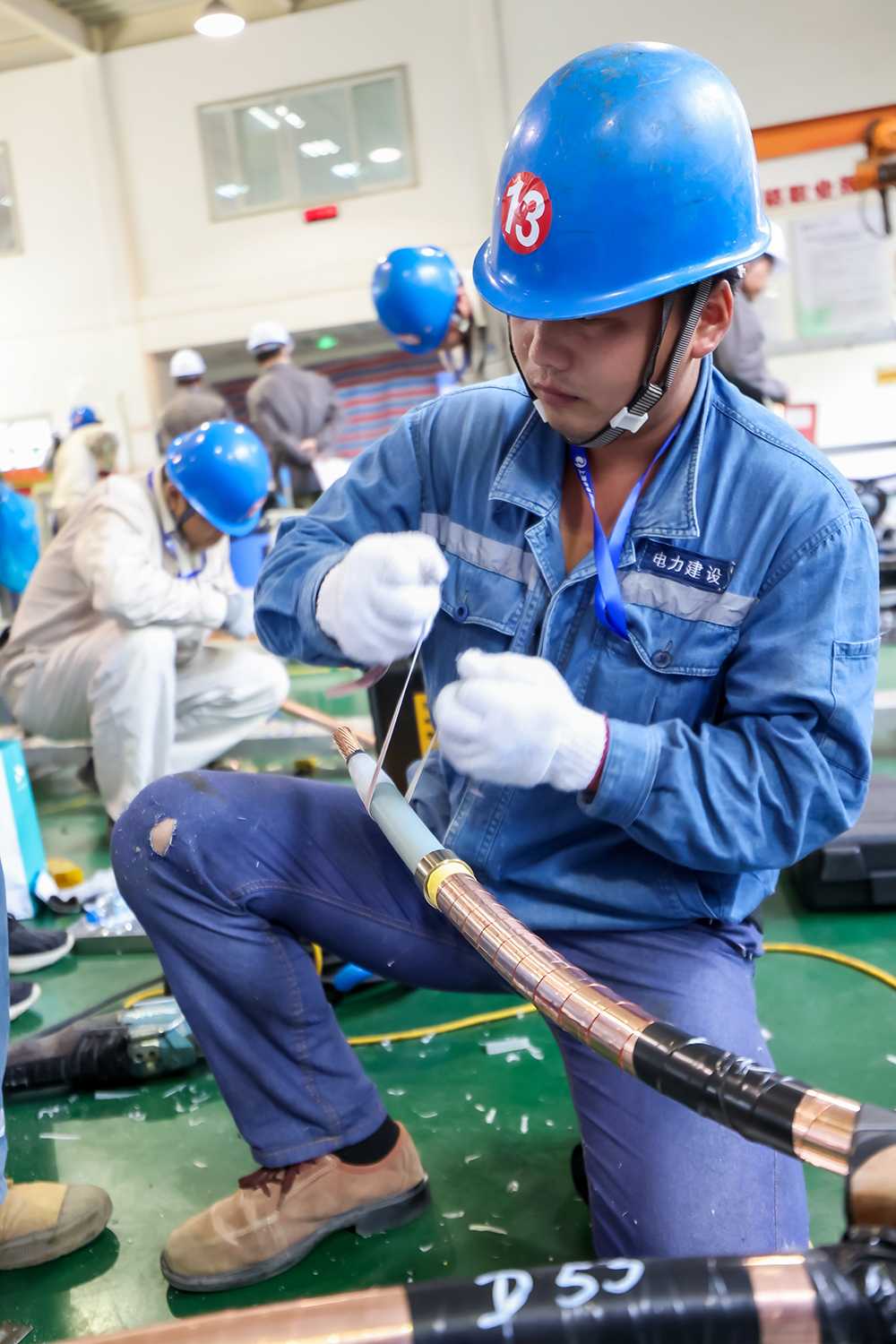 本次技能竞赛分为理论考试和技能操作。其中技能操作共两项,分别为10kV交联电缆(240mm²)绕包式中间接头施工工艺、110kV交联电缆(800mm²)外屏蔽处理施工工艺。