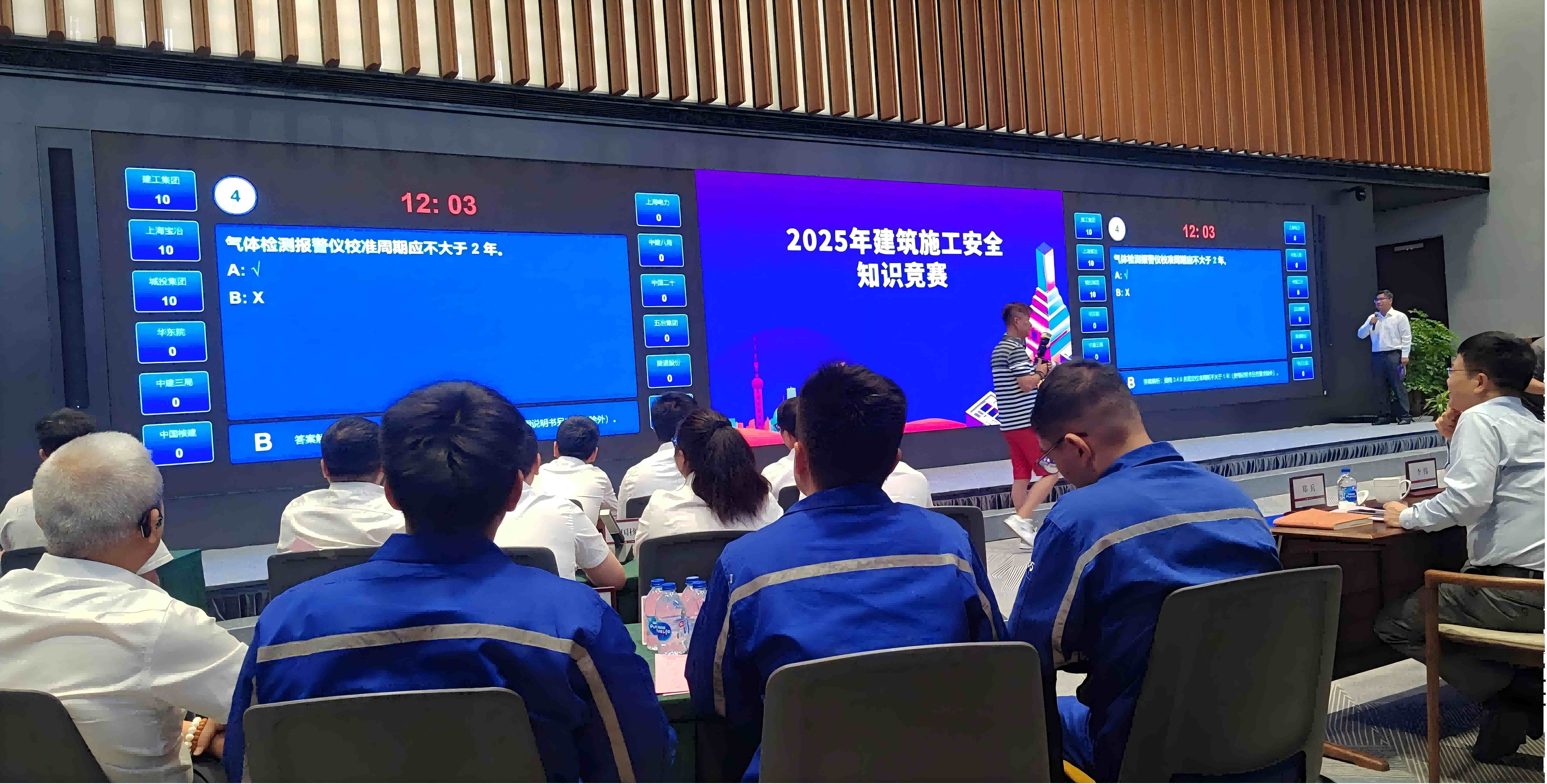 2025年6月27日下午,公司安质部经理陆剑波应邀参加了上海市应急管理与安全生产协会组织举办的2025年安全生产月建筑施工安全知识竞赛活动,本次竞赛主要考验12支参赛队伍对安全知识的掌握程度,其中对隐患图片的识别更契合了今年安全月活动主题“人人讲安全,个个会应急——查找身边安全隐患”,各支参赛队伍都发挥了出色的水平。